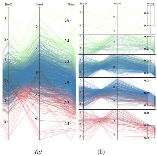 - Heinrich, J., and D. Weiskopf. 2013. State of the art of parallel coordinates. In Eurographics 2013—State of the Art Reports. pp. 95–116. [Google Scholar] [CrossRef]