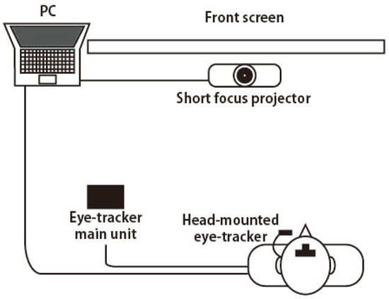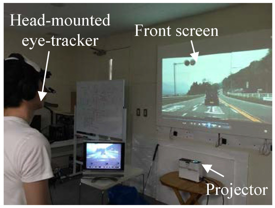Figure 1 illustrates the overview of the experimental apparatus devised to measure the subjects’ gaze behavior while watching the large screen. Figure 2 illustrates the actual experimental environment.