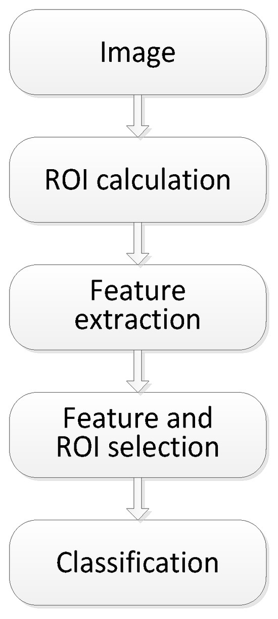After feature extraction, the resulting features were assigned to specific ROIs. Not all features were equally useful for classification. Therefore, it seems sensible to make their selection. We decided to use two known feature selection methods: t-statistic (