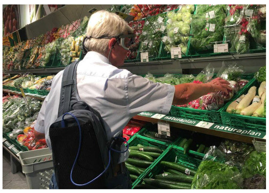 As this feasibility study introduces a simple, but innovative real-life assessment paradigm with older adults, it must address three key feasibility issues. First, will older adults wear the eye tracker all the time during grocery shopping? Our real-life assessment paradigm required that participants do not remove the eye tracker in order to record data. Second, is it possible to successfully record eye movements of older adults in a grocery store? There are several factors that might influence the recording of eye movements in an unstandardized setting, for example the illumination, participants’ free movements, and the varying distance to the shelves. Third, is it possible to evaluate the eye movements with respect to three areas of interest? Unlike laboratory-based eye tracking studies, this feasibility study did not use markers that facilitate the eye tracker data analysis. In contrast, all videos of the scene camera had to be coded manually by two independent coders (see Lappi, 2015, for an overview of special concerns that naturalistic research brings about).