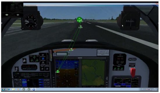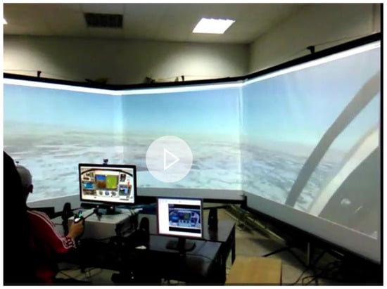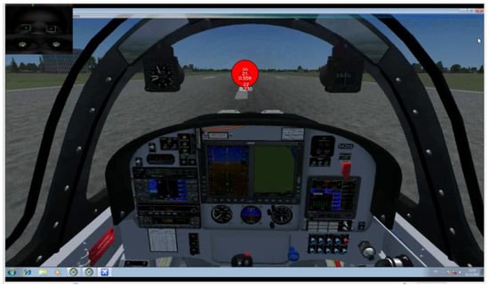We created the flight simulator by use of COTS (Commercial-Off-The-Shelf) components, including both hardware and software, based on Microsoft Flight Simulator X (FSX). This software package installation was on the hardware configuration that was commercially available at the time of the research study [39]. A specific add-on possesses the characteristics of the Lasta military trainer with its digital cockpit. Figure 5 shows an image of the simulator setup.
