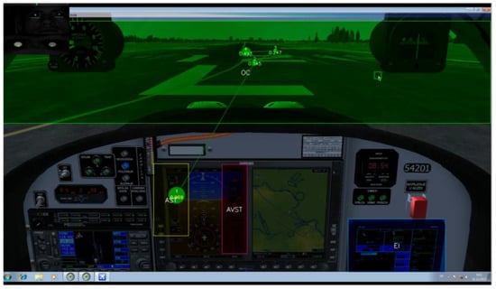 We collected the eye movement data in four areas of interest (AOIs). The Areas of interest were: Airspeed Tape (AST); Altitude and Vertical Speed Tapes (AVST); Engine Instruments (EI) and Outside of Cockpit (OC). These AOIs were presumed as providers for the most critical information for the pilot’s situational awareness (SA) while performing essential VFR flights. Those data and crosschecking patterns are recommended or defined in the official manuals used by candidates and trainees [36,37]. No matter whether there are moving cursors in circular or semicircular areas, Moving-Tapes (linear moving scale) with or without trend information, changing digits, or changing colors and symbology of primary flight display (PFD), Flight deck itself, with its instrument panel (in traditional T layout or modern glass cockpit), represents the source of dynamic stimuli for observer [17]. Components of the glass cockpit such as Air Speed Tape (AST); Altitude and Vertical Speed Tapes (AVST); Engine Instruments (EI) are the ones that offer dynamic stimuli. Outside the cockpit (OC) area, is a part of the screen viewed during the flight where changes between the projection of the cockpit frame onto the horizon and the horizon layout itself occur. This area is especially essential for the training of beginner pilots since instructors teach them in scanmode of attention to “OC, airspeed indicator, OC, attitude indicator, OC, altimeter” [21]. We created dynamic areas of interest, after recording flights and capturing eye fixations (EF) of participants. Time intervals were chosen based on task characteristics in event-based time intervals. This study investigated attention characteristics of groups of participants across the number of different flight tasks (phases of flight) in VFR flight scenario. Dynamically interpolated rectangular of AOIs frames and the analysis between the time points was chosen based on the researcher’s judgment.