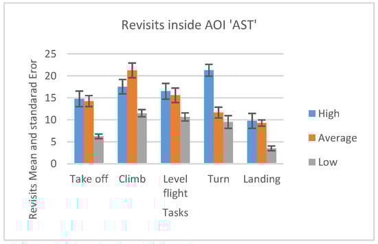 Number of revisits AOI ‘AST” for five flight phases for psychological selection stream with associated Standard errors.