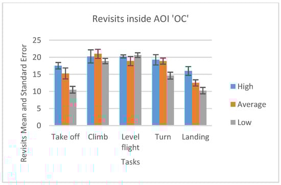 Number of revisits AOI ‘OC’ for five flight phases for psychological selection stream with associated Standard errors.