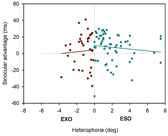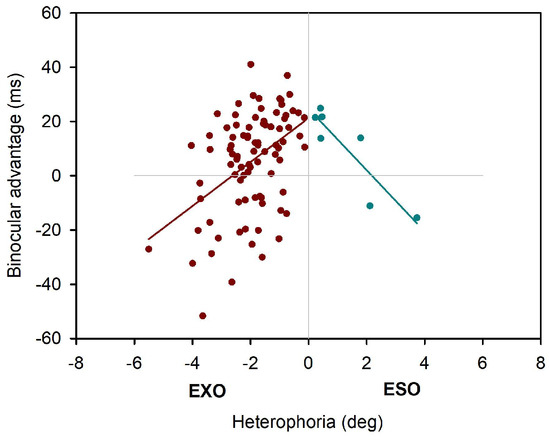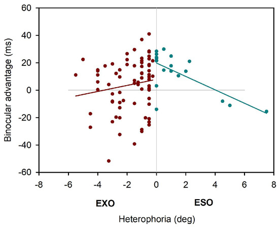 Binocular advantages as function of objective heterophoria (EyeLink II).