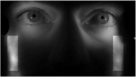Apparatus. The Lumix DMC-GH4 was set to ISO 400, and F/8. The camera was placed at a distance of 50 cm from the observer, and the center of the lens was positioned 4.5 cm below the eyes at an angle of approximately 4 degrees with the horizontal axis (the frame was not centered on the eyes). A focal length of approximately 70 mm was used to capture an appropriate region including the eyes and surrounding areas.