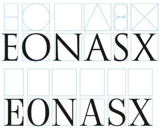 Classical and ‘Modern’ letter proportions (adapted from (Cheng, 2006)). The typeface ‘Trajan’ by Carol Twombly. (up) and the typeface ‘Neoplanta BG’ by Stjepan Fileki (down).
