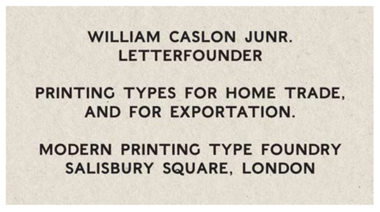 Similar types, called “Egyptian”, were becoming more frequent. Only a year later, in 1816, William Caslon Junior promoted his “English Egyptian” – the first sans-serif typeface (Figure 3). Its appearance initiated a series of similar sans-serifs from other type foundries. That is how the first forms of the so-called Grotesque typefaces were developed, which evolved into Neo-Grotesque (at the end of the 19th century), then Geometric (ca. 1925) and Humanist (cca. 1930).