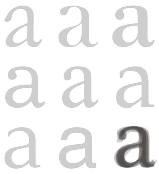 Font hinting represents the last stage of font design, and it provides instructions for rasterisation, i.e., rasterising the characters on the output device. The stimuli were generated using the FontLab Studio 5.2.1. software for Windows OS.