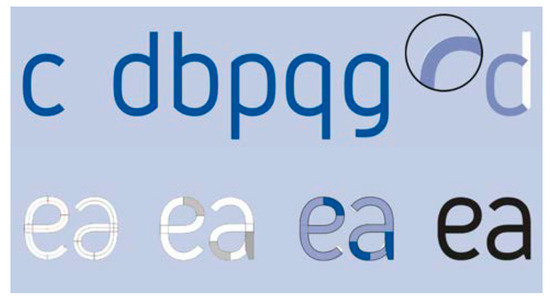 - Beier, S., and K. Larson. 2010. Design Improvements for Frequently Misrecognized Letters. Information Design Journal 18, 2: 118–137. [Google Scholar] [CrossRef]