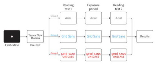 While the results of the reading speed test for texts set in common typefaces (Arial and Grid Sans) did not vary significantly, the same tests run for unknown-uncommon (Grid Sans Unicase) showed noticeably higher reading ease after the exposure period.