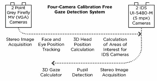 - Nagamatsu, T.; Sugano, R; Iwamoto, Y.; Junzo, K.; Tanaka, N. User-calibration-free gaze tracking with estimation of the horizontal angles between the visual and the optical axes of both eyes. In In ETRA ’10: Proceedings of the 2010 Symposium on Eye-Tracking Research & Applications. Association for Computing Machinery, New York, NY, USA; 2010; pp. 251–254. [Google Scholar] [CrossRef]