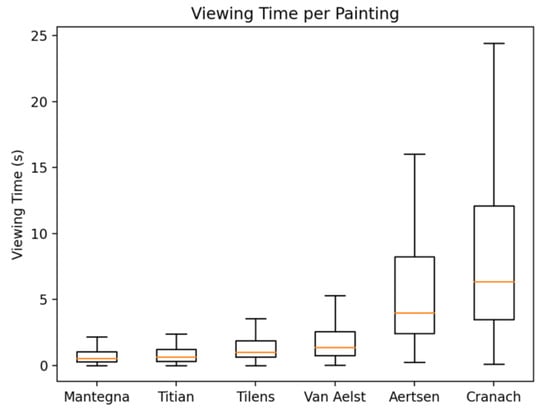 The difference in viewing time suggests that there is something about certain artworks themselves that consistently draws more attention from a wide variety of viewers. Systematic studies with a larger number of paintings as well as within painting viewing analysis may shed light on which elements attract longer visitors’ attention.