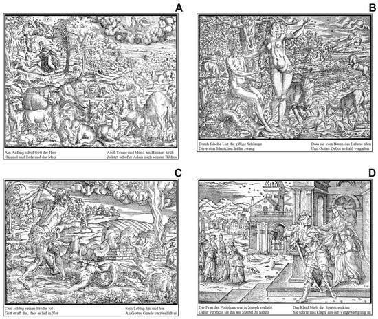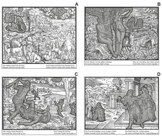 - Schmidt, P. 1962. Die Illustrationen der Lutherbibel 1522-1700. Ein Stück abendländischer Kulturund Kirchengeschichte. Mit Verzeichnis der Bibeln, Bilder und Künstler. Basel 1962. [Google Scholar]