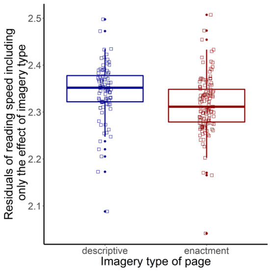In recent decades, several theorists have formulated predictions concerning imagery-prompting features in narrative fiction [1,10,11,19,20,21,22,23]. Albeit formulated largely independently, these predictions partly overlap. For example, multiple authors [1,10,11,21,23] propose that in the process of making a storyworld come to life through imagery, verbal renditions of bodily movement play a distinctly productive role. To date, this idea has been most comprehensively developed in Kuzmičová’s [1,23] theoretical model of mental imagery in narrative reading. Drawing on the embodied language processing [24] and enactivist [25] paradigms in the cognitive sciences, the model predicts that the most strongly imageable prose renders physical objects by way of letting them be manipulated through characters’ bodily movements and actions, rather than explicitly detailing their visual properties as commonly presupposed [26,27].