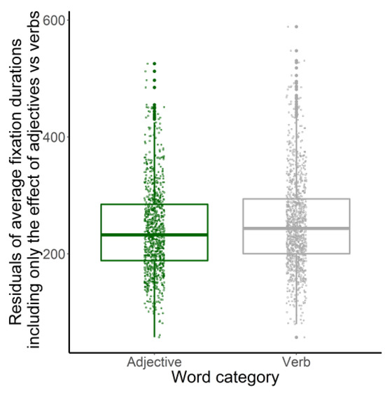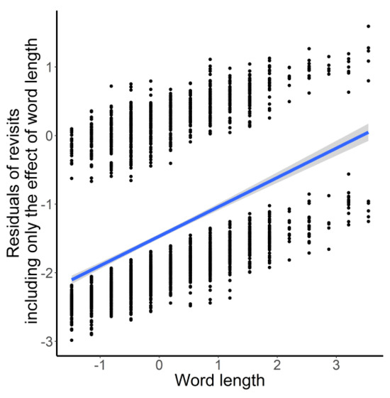 Third, we also analysed whether a regression occurred on a word after its first reading (coded as a binary variable). The amount of revisits or regressions are usually interpreted as an indicator for comprehension difficulties (e.g. [53,54]). Also for this analysis only words from the two Davis texts satisfying the above mentioned criteria were used.
