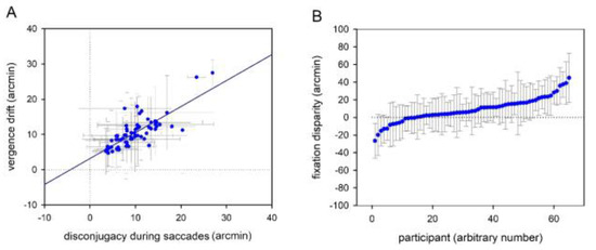 - Jainta, S., J. Hoormann, W. B. Kloke, and W. Jaschinski. 2010. Binocularity during reading fixations: Properties of the minimum fixation disparity. Vision Res 50, 18: 1775–1785. [Google Scholar] [CrossRef]