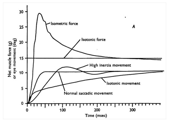- Robinson, D. A. 1964. The mechanics of human saccadic eye movement. Journal of Physiology 174: 245–264. [Google Scholar] [CrossRef] [PubMed]