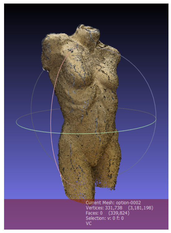 Screenshot of the dense point cloud of the 3D artwork in Meshlab.