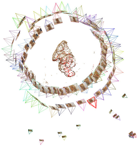 Screenshot of the sparse point cloud in VisualSFM with the picture sources around the stimulus.
