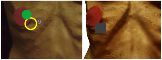 Fixation 9 in the world_viz_video (yellow circle in the left picture) and fixation 9 on the 3D Model with FixationProjector marking (grey square in the right picture).