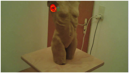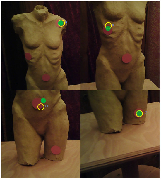 To evaluate the complete procedure of the MAP3D approach including the eye tracker, an adjusted 3D model was created for exploratory experimentation. For this purpose, four red dots (see Figure 17) Ø 2.5 cm were attached to the stimulus to check the accuracy and especially the subsequent automatic mapping with the FixationProjector.