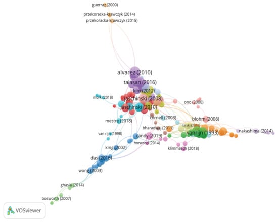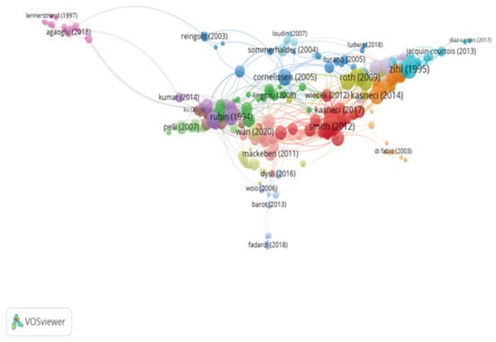 Major databases such as WOS or Scopus allow for the creation of citation networks. However, it is not possible to perform a systematic review of all of the existing scientific literature published on a topic, given that this does not provide a general overview of the connections between the citations of a group of publications. For this reason, the CitNetExplorer software was used, as, besides creating citation networks, it also offers a more detailed analysis of the scientific literature than the WOS or Scopus databases ().