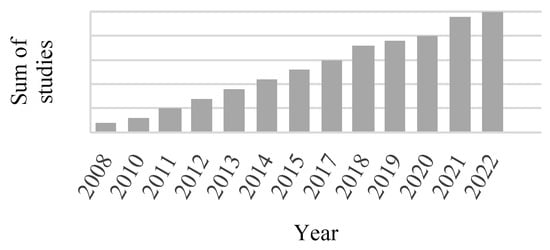 Cumulated number of studies by year of publication.