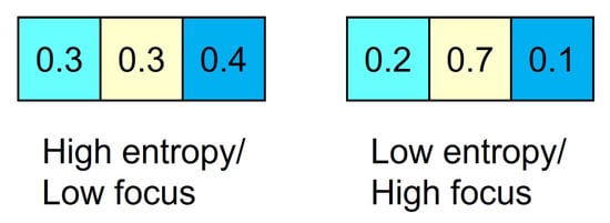 Adapted from Sharma et al. (2021a): Individual focus size based on high (left) and low entropy (right) of gaze across different AOIs (A, B, or C).