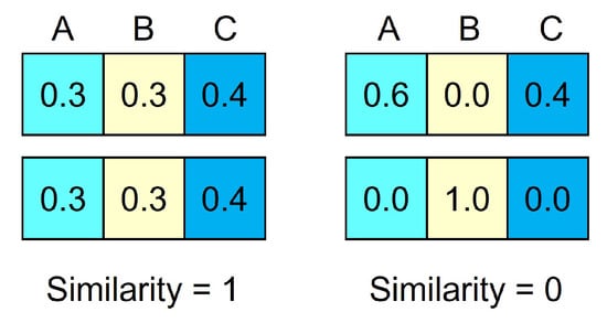Adapted from Sharma et al. (2021a): Similarity of gaze distribution between AOIs (A, B, or C) for perfectly matching (left) and completely different entropy values (right) of two participants.