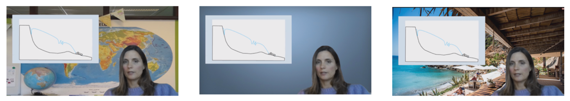 Catrysse, L.; Kerckhoffs, A.; Jarodzka, H. Behind the Scenes: Impact of Virtual Backgrounds in Educational Videos on Visual Processing and Learning Outcomes. J. Eye Mov. Res. 2023, 16, 1-16. https://doi.org/10.16910/jemr.16.3.4
