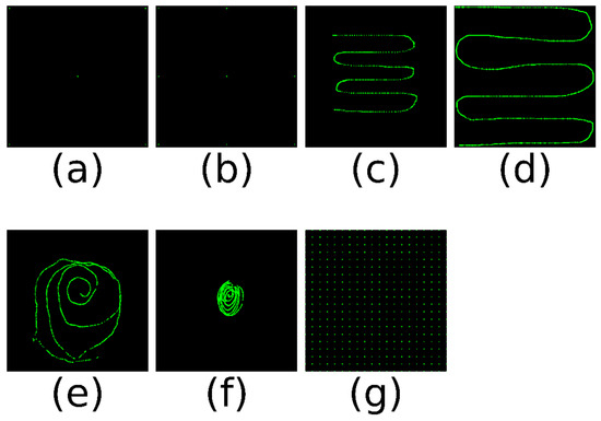 Pattern. (a) 5-point calibration (b) 9-point calibration (c) Centre calibration (d) Full calibration (e) Subject huge (f) Subject small (g) 20 × 20 full field.