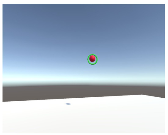 Screenshot of VR task. Note. Participant views distant target and aligns the virtual ring around it. The green color confirms the correct placement and signifies the participant to initiate the movement towards the head.