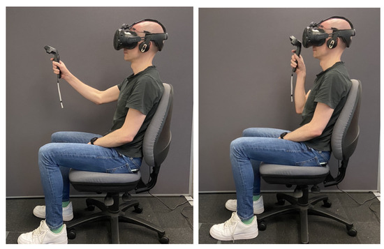Participant during VR task sequence. Note. Left: Start of the trial. Right: Completion of the movement.