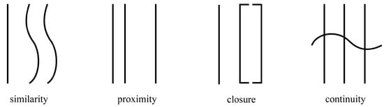 - Wagemans, J., J. H. Elder, M. Kubovy, S. E. Palmer, M. A. Peterson, M. Singh, and R. von der Heydt. 2012. A century of Gestalt psychology in visual perception: I. Perceptual grouping and figure-ground organization. Psychological Bulletin 138, 6: 1172–1217. [Google Scholar] [CrossRef]