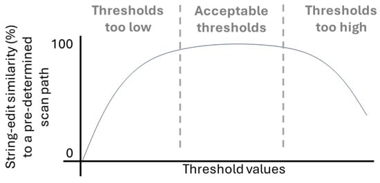 However, in many instances, an ideal scan path sequence is not readily available for researchers to compare with in order to evaluate thresholds. To address this challenge, the following section introduces two methods to approximate the relationship between thresholds and string edit similarity to facilitate the selection of accurate threshold values.