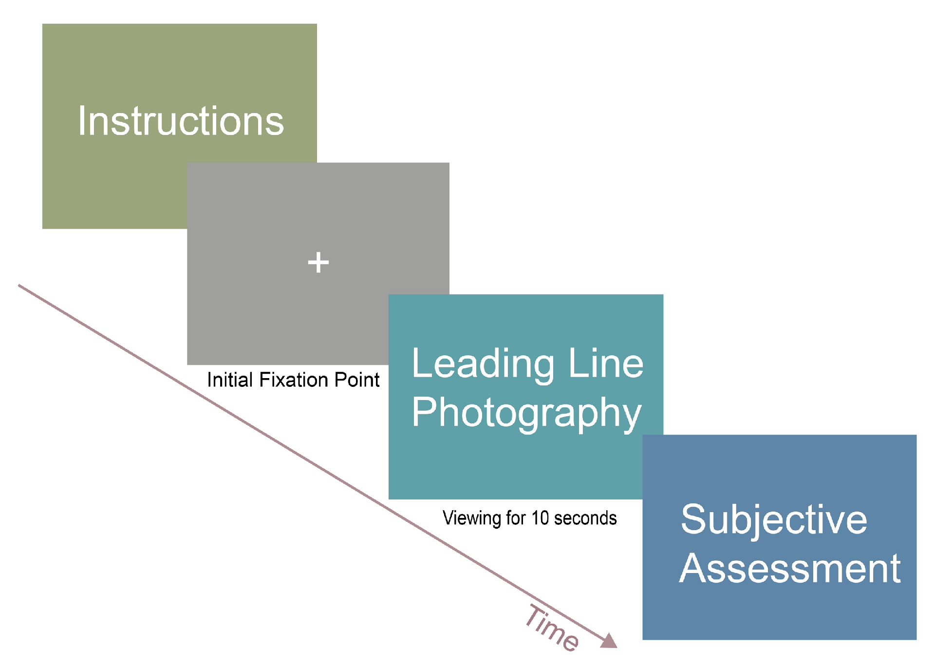 Photographic theory has developed a set of rules for good composition - the rule of thirds, golden ratio, triangular composition and central perspective. etc. are all about creating images of beauty, and research evidence shows how that affects beauty. Freeman (2017, 2010) underscored the importance of balance and harmony in compositions. Understanding how viewers perceive images is crucial for photographers. Although compositional techniques influence viewing behavior, a gap exists in knowledge regarding the principles governing the movement of visual attention. Few studies have investigated how viewers observe photographs, and empirical research on these laws remains scarce (Leder et al., 2022). Albert (2003) highlighted the importance of understanding the impact of leading in a composition on the viewer’s gaze. Eye-tracking technology offers a valuable tool for measuring gaze, recording sequences of viewing events, and revealing cognitive processes through gaze trajectories. With this technology, researchers can understand how viewers observe and are attracted to key elements of images (Yarbus, 1967; Fink et al., 2019; Freeman, 2017; Rayner, 1998). Empirical support for compositional theories in photography psychology research is limited, and relatively few studies have combined art with cognitive science, but eye-tracking analysis techniques have become widely adopted in psychological research.
