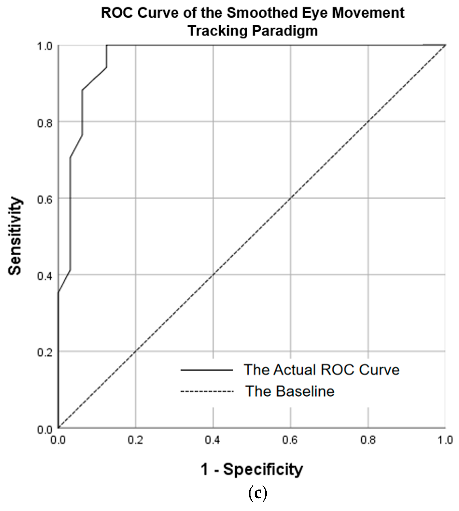- Benson, P.J.; Beedie, S.A.; Shephard, E.; Giegling, I.; Rujescu, D.; St Clair, D. Simple viewing tests can detect eye movement abnormalities that distinguish schizophrenia cases from controls with exceptional accuracy. Biol. Psychiatry 2012, 72, 716–724. [Google Scholar] [CrossRef]