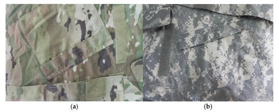 Examples of the camouflage patterns of a multi-terrain camouflage uniform. (a) The British army’s multi-terrain camouflage. (b) The US military’s MARPAT digital camouflage.