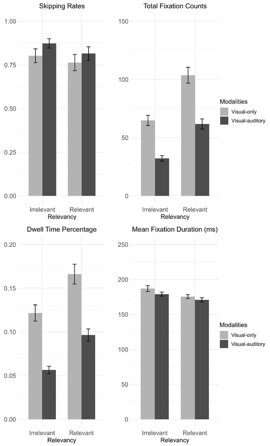 Modality-level eye-movement measures (The error bars represented standard error).