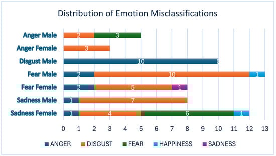 - Fear and sadness are often misclassified, mainly as disgust.