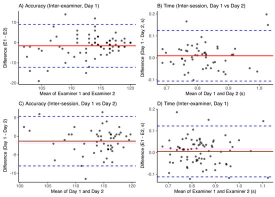 | Intra-examiner (Examiner 2) | Accuracy | +0.94 points | −8.20 to 10.09 | — |