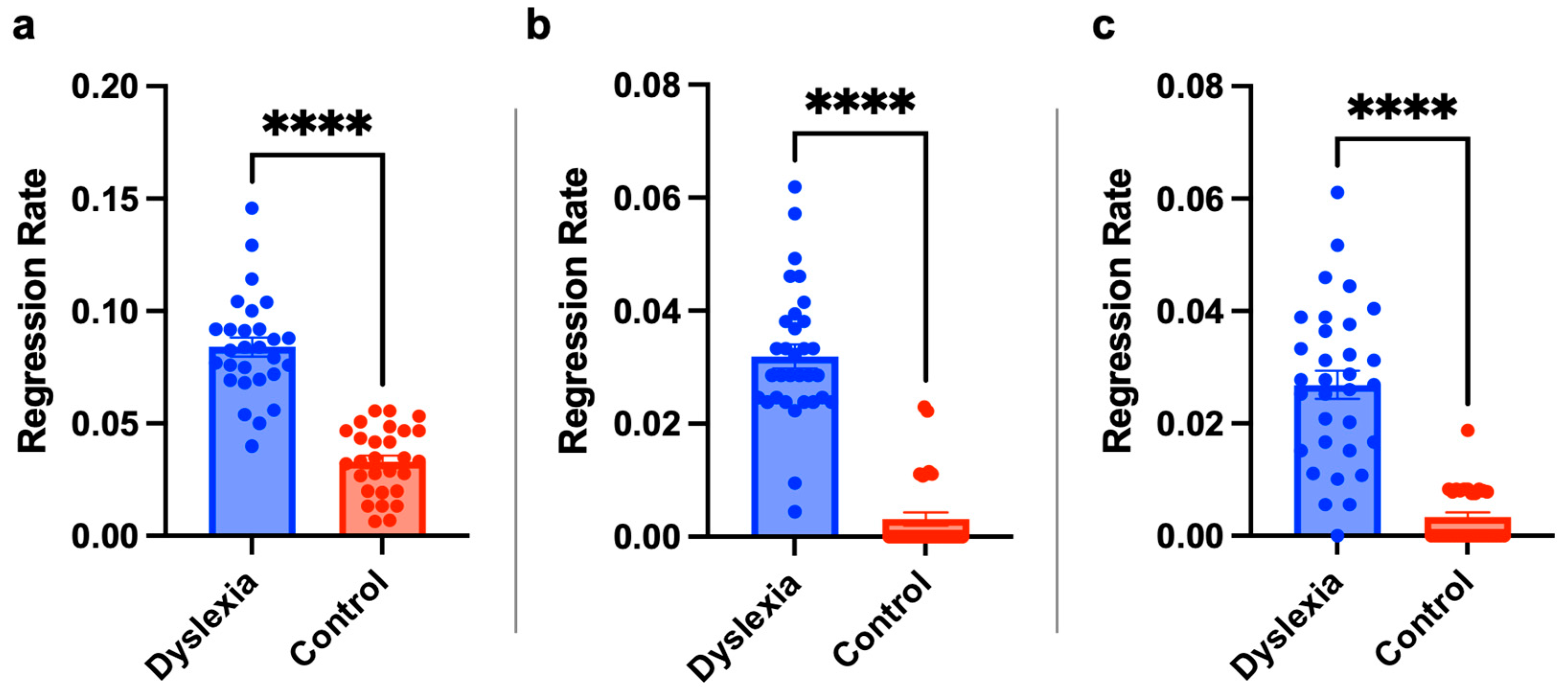 3.3. The Regression Rate Is Significantly Higher in the Dyslexia Group