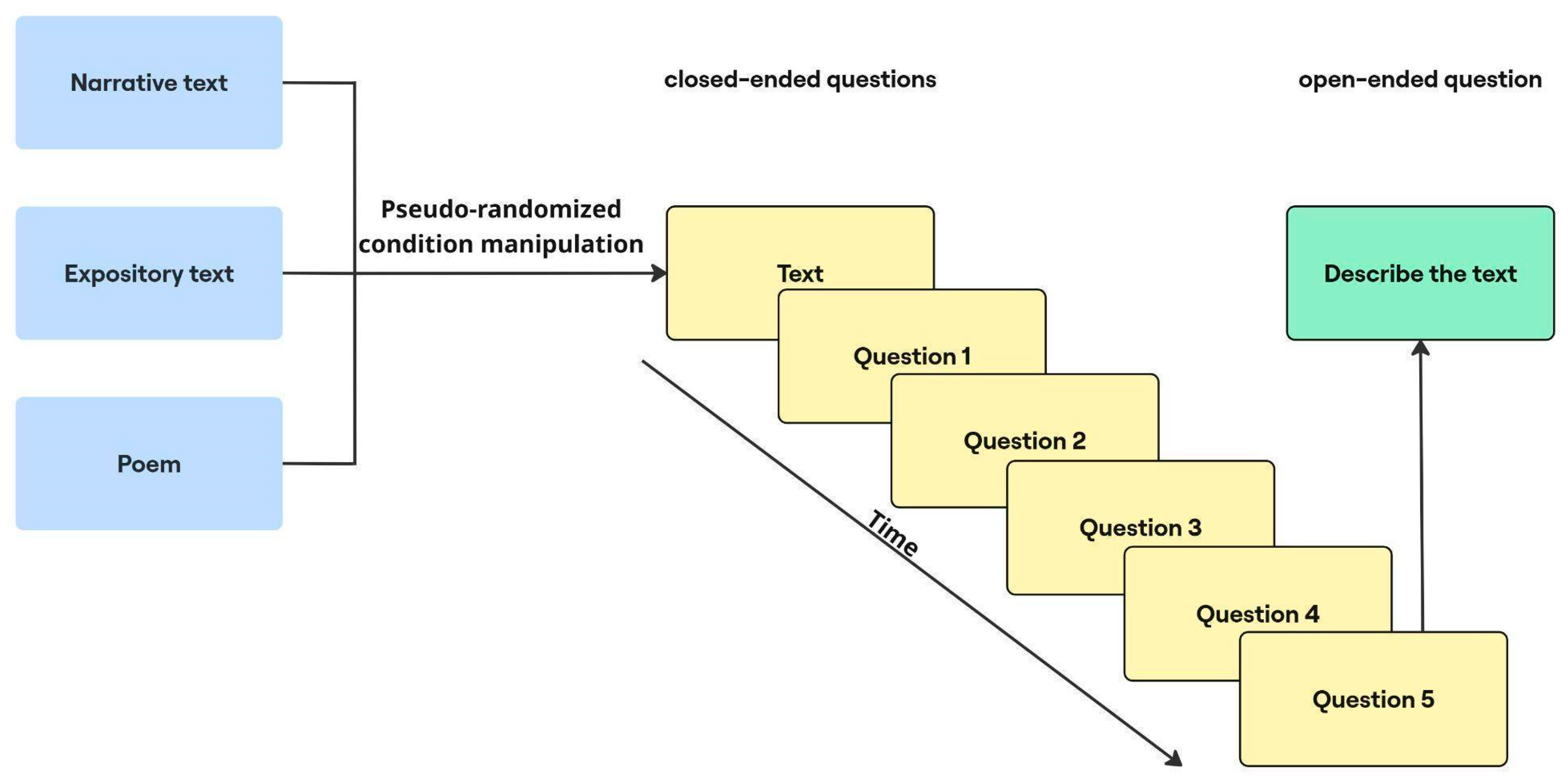 The present study design has certain limitations and assumptions that should be considered when interpreting the results and planning future research. Previous studies have demonstrated that text topic, background knowledge, and personal preferences can significantly influence reading strategies and comprehension levels. We did not include these factors in the analysis. However, they represent a major issue that warrants dedicated investigation with consideration of genre-specific effects. Furthermore, the study was related to a single linguistic and cultural context and did not involve measures of cognitive factors like working memory or linguistic proficiency.