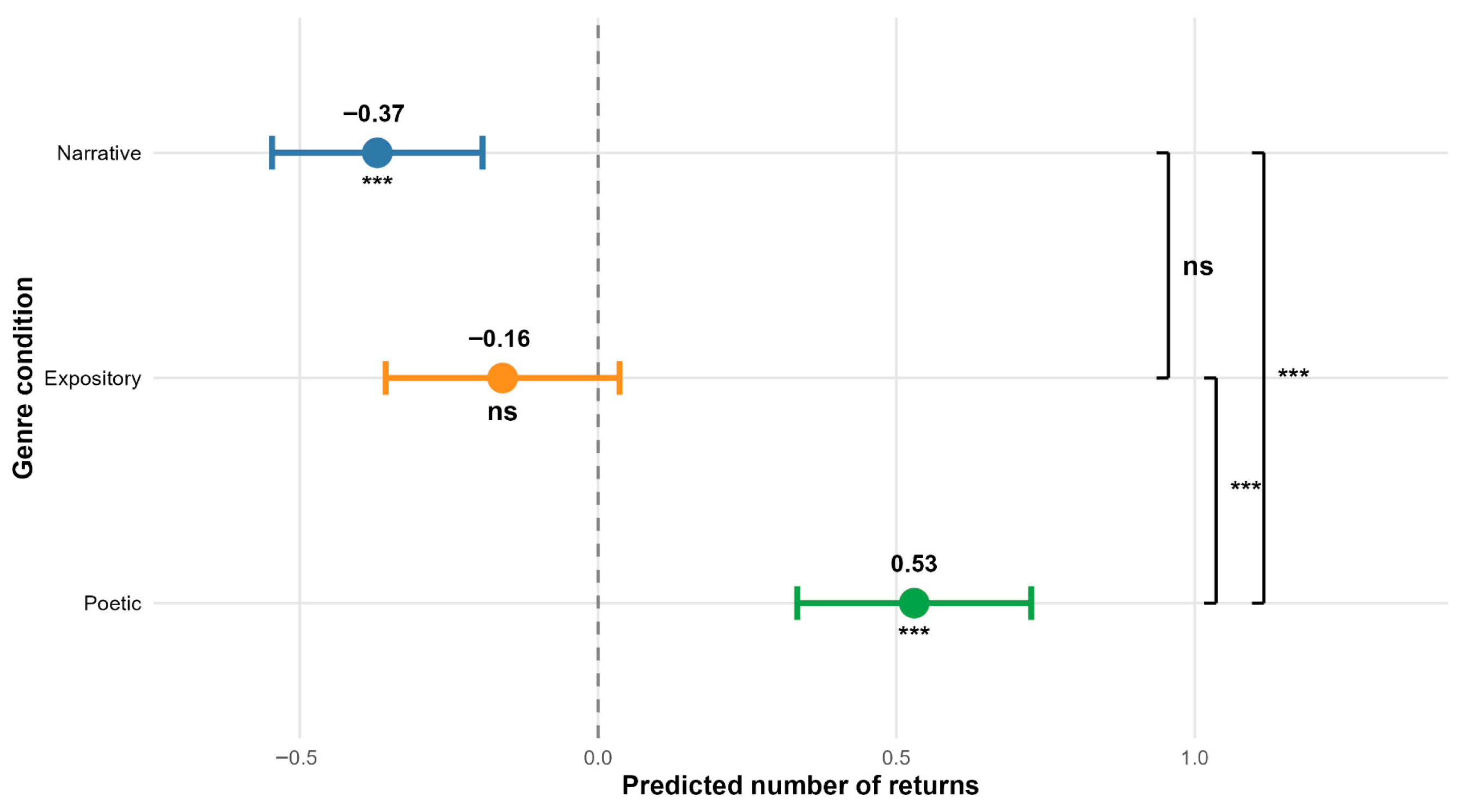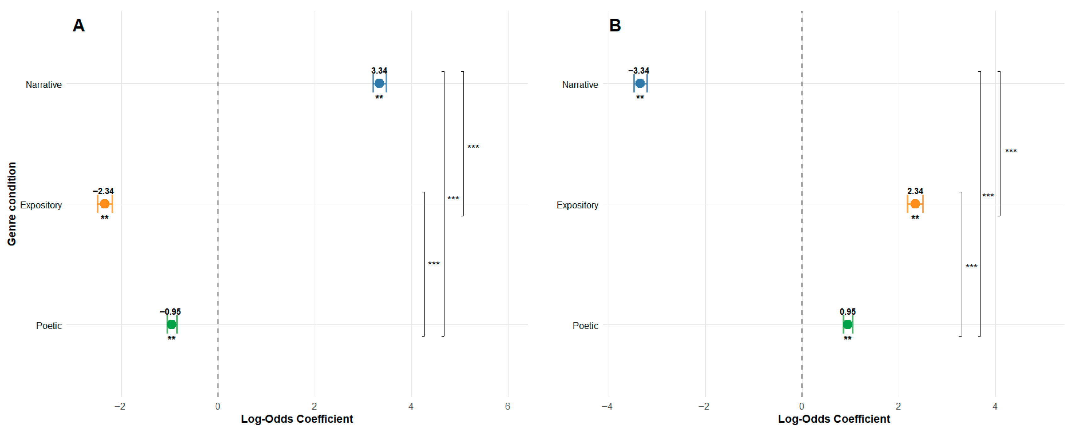 17]. Given these established differences between poetic and prose genres, we hypothesize that the underlying cognitive mechanisms driving these regressions likely differ between genres.