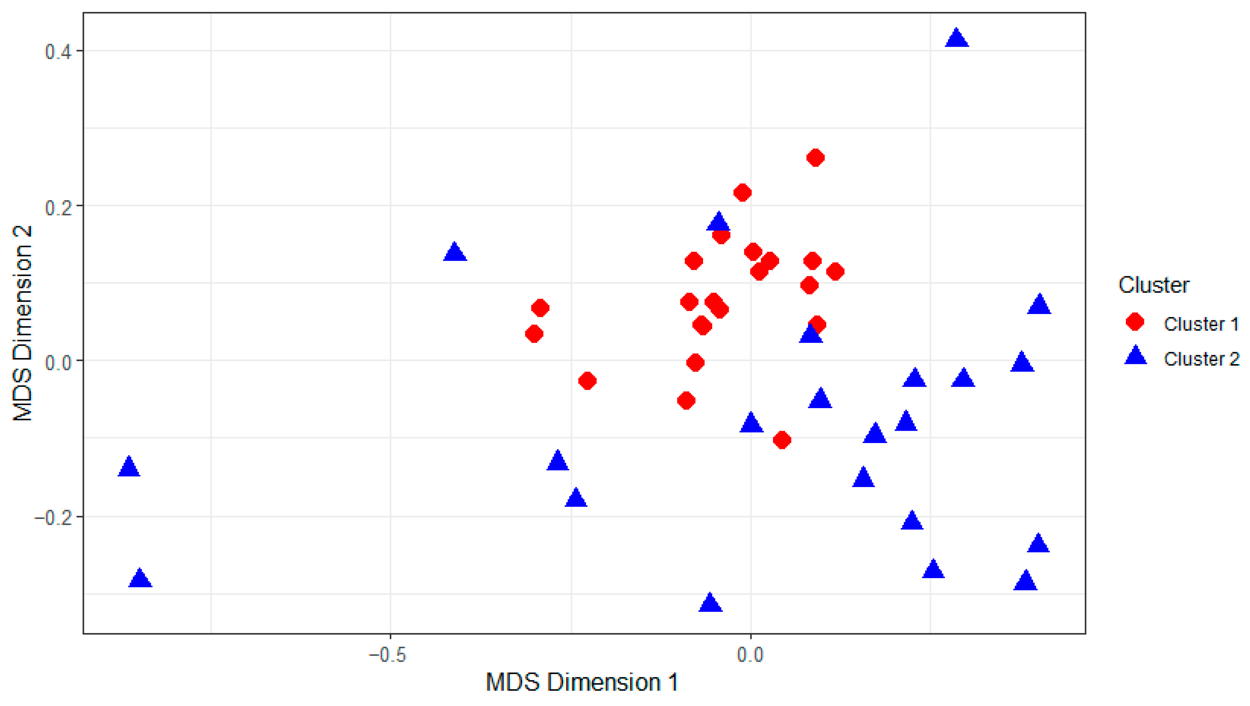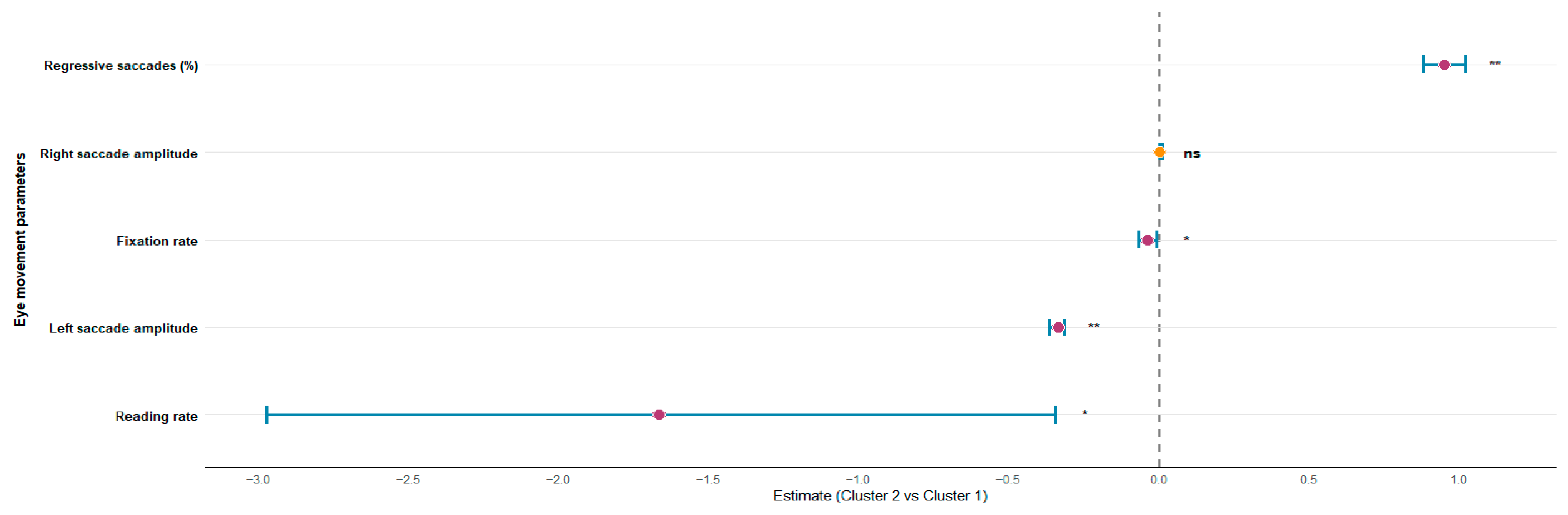 The identified clusters differed in reading rate and fixation rate, indicating that texts read with the forward reading pattern were processed longer than those read with the regressive pattern. Previous research has shown that more regressions typically indicate a pattern where readers resolve comprehension difficulties, which is usually associated with increased reading time. Our results contradict these earlier findings. However, although the difference between clusters in reading rate and fixation rate reached statistical significance, the effect size was extremely small. Therefore, its interpretation remains questionable and requires further verification.