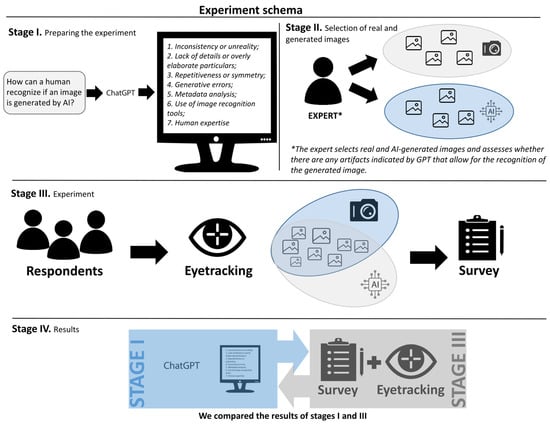 The scheme of experiment’s stages including ChatGPT response analysis (Stage I) and preparing the set of images (stage II).