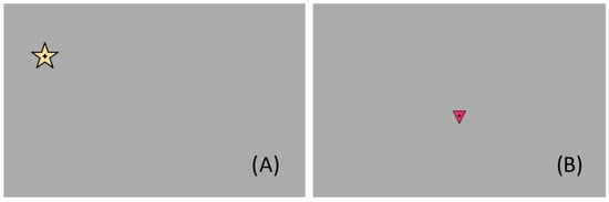 Smooth pursuit was tested by following a stimulus (triangle, Figure 4B) that moved in a straight line on the screen. Movements were tested in the four main directions: from top to bottom and vice versa, and left to right and vice versa. The stimulus did not start moving until the ET detected that the patient was fixating on it.