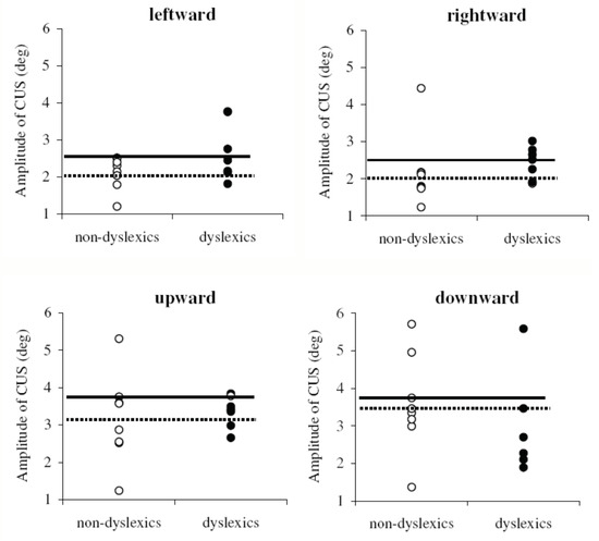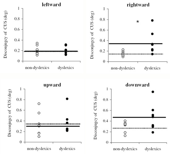 Smooth pursuit (SP) was explored in dyslexics and non-dyslexics. Dyslexic children show similar gain of SP, and number and amplitude of catch-up saccades (CUS) as non-dyslexic children. The quality of binocular coordination is good for both groups; the only significant exception is for [...] Read more.