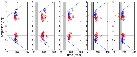 - Delinte, A., C. M. Gomez, M. F. Decostre, M. Crommelinck, and A. Roucoux. 2002. Amplitude transition function of human express saccades. Neuroscience Research 42, 1: 21–34. [Google Scholar] [CrossRef]